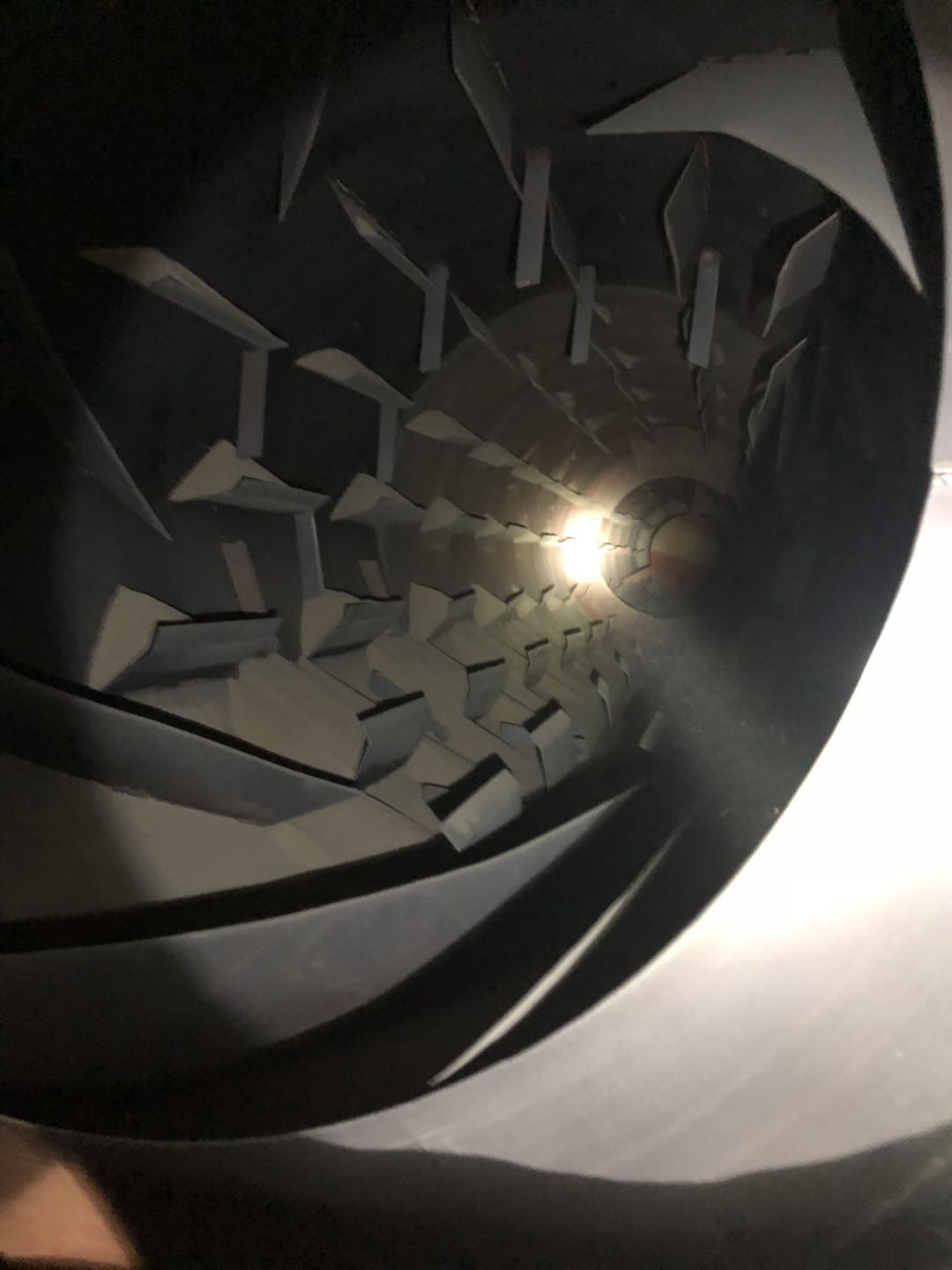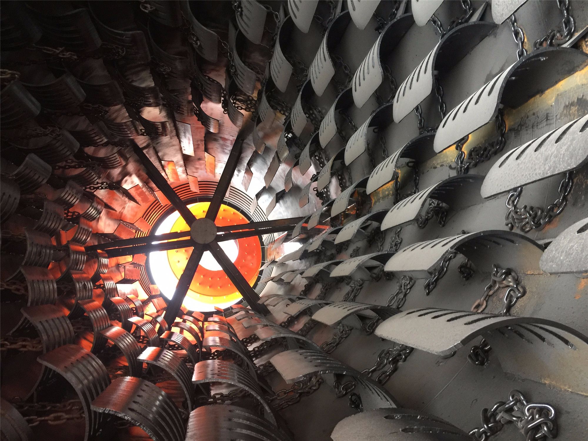 湿物料从干燥机一端投入后,在内筒均布的抄板器翻动下,物料在干燥器内均匀分布与分散,且与并流( 逆流 )的热空气充分接触 ,加快了干燥传流、传质推动力。在干燥过程中,物料在带有倾斜的抄板和热气流作用下,可调控地运动至干燥机另一端星形卸料阀排出成品。