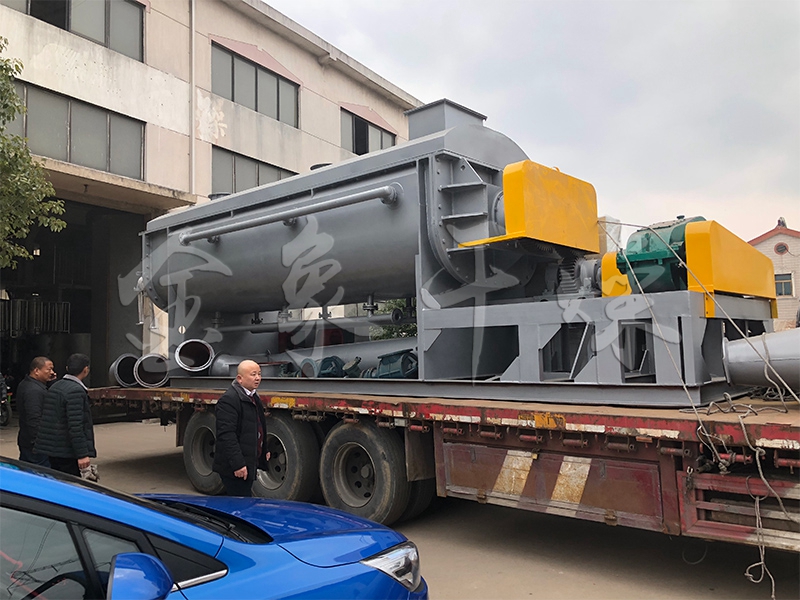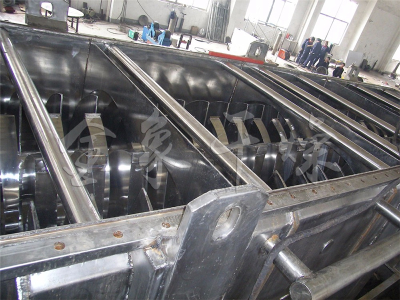 The hollow hollow shaft is densely arranged on the hollow shaft, and the heat medium flows through the blade through the hollow shaft. The heat transfer area in the effective volume per unit is large, and the temperature of the heat medium is from -40 ° C to 320 ° C. It can be water vapor or liquid type: such as hot water and heat transfer oil. Indirect conduction heating, no air is carried away to remove heat, and heat is used to heat the material. The heat loss is the heat dissipation to the environment through the insulation of the body. The wedge-shaped blade heat transfer surface has a self-cleaning function. The relative movement of the material particles and the wedge surface produces a scrubbing action, which can wash away the adhering material on the wedge surface, so that a clean heat transfer surface is maintained during operation. The shell of the paddle dryer is of the omega type, and two to four hollow agitating shafts are generally arranged in the casing. The housing has a sealed end cover and an upper cover to prevent material dust from leaking out and fully functioning.