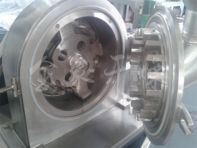 本机的工作原理是物料进入粉碎室,在高速旋转的活动齿盘与固定齿盘间受齿的冲击、剪切、磨擦及物料间的相互撞击的作用下被粉碎,经筛网筛选后即成为所需的粉料。