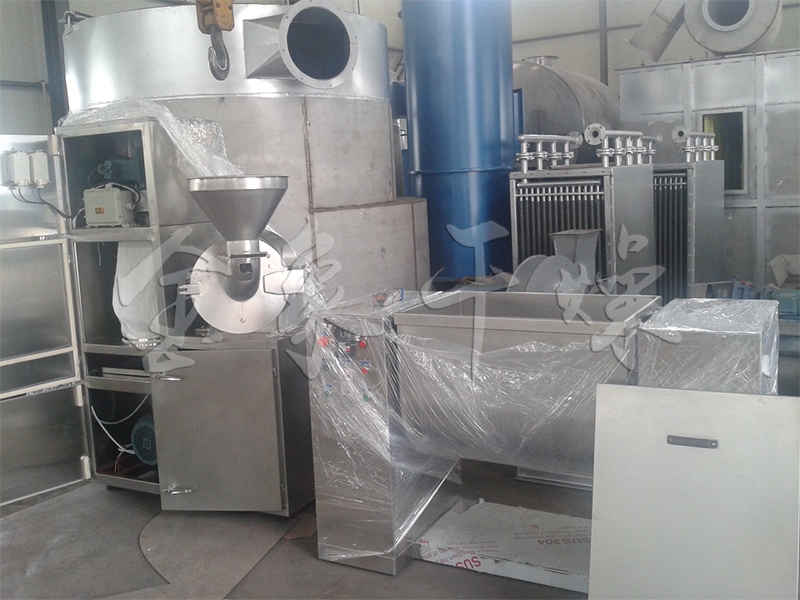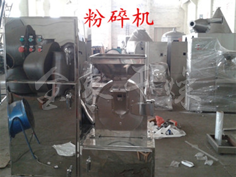 本粉碎机组的粉碎机、物料收集箱和吸尘器,全部采用不锈钢材料制作。符合药品生产的“GMP”的要求。